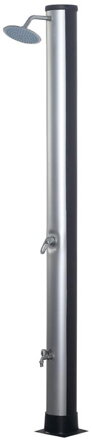 - Záhradná solárna sprcha je konštruovaná ako jednodielne teleso, ktorého PP plášť slúži ako zásobník teplej vody a zároveň funguje ako slnečný kolektor.