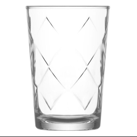 Poháre sú vyrobené z číreho skla s jemným vzorom, vhodné na vodu a iné nealkoholické nápoje.
