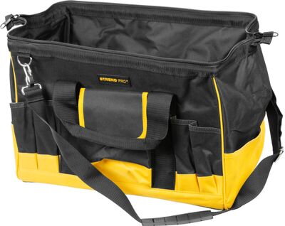 Textilná brašňa na náradie zatvárateľná so zipsom a ramenným popruhom.